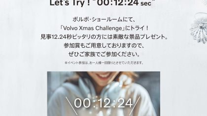 ボルボ・カー三鷹のinformationをご覧いただきありがとうございます本日より、ショールームにてXmas Challengeを開催中です 【クリスマスチャレンジ】12.24秒ぴったりで止められた方に、素敵なプレゼントをご用意しておりますチャレンジに成功された方に...