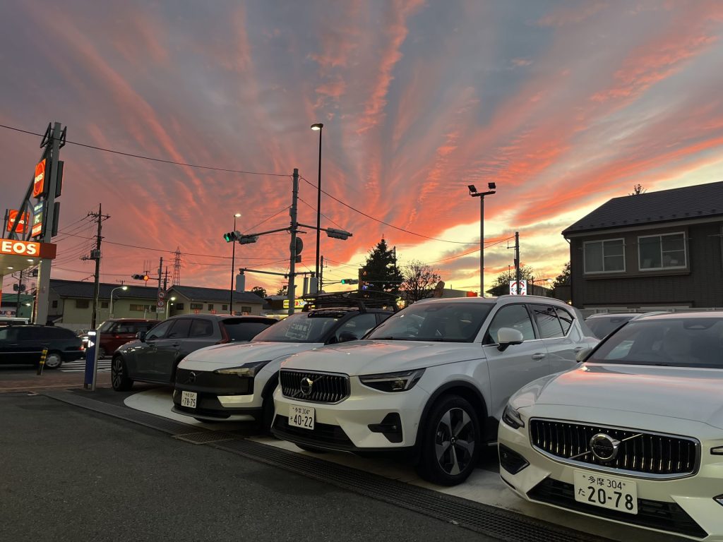 ショールームから見える夕焼けも、この季節ならではの美しさです
