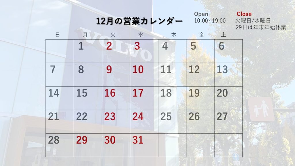 12月の営業日をお知らせいたします